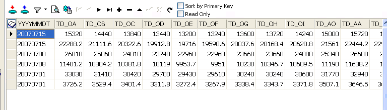 select sum(TD_OA) as SUM_OA, sum(TD_OB) as SUM_OB, sum(TD_OC) as SUM_OC, sum(TD_OD) as SUM_OD, sum(TD_OE) as SUM_OE, sum(TD_OF) as SUM_OF,sum(TD_OG) as SUM_OG, sum(TD_OH) as SUM_OH, sum(TD_OI) as SUM_OI,sum(TD_AO) as SUM_AO, sum(TD_AA) as SUM_AA, sum(TD_AB) as SUM_AB,sum(TD_AC) as SUM_AC, sum(TD_AD) as SUM_AD, sum(TD_AE) as SUM_AE,sum(TD_AF) as SUM_AF, sum(TD_AG) as SUM_AG, sum(TD_AH) as SUM_AH,sum(TD_AI) as SUM_AI, sum(TD_BO) as SUM_BO, sum(TD_BA) as SUM_BA,sum(TD_BB) as SUM_BB, sum(TD_BC) as SUM_BC, sum(TD_BD) as SUM_BD from system.ACCTEST_DS where yyyymmdt in to_char(to_date(’" + Date1 + "’,’yyyymmdd’)-(7*1), ’yyyymmdd’) or yyyymmdt in to_char(to_date(’" + Date1 + "’,’yyyymmdd’)-(7*2), ’yyyymmdd’) or yyyymmdt in to_char(to_date(’" + Date1 + "’,’yyyymmdd’)-(7*3), ’yyyymmdd’);