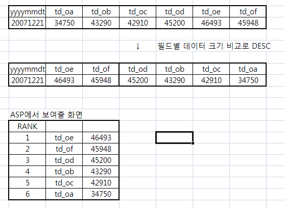 필드끼리 데이터를 비교해서 큰 데이터를 가지고잇는 필드순으로 정열을시려는데