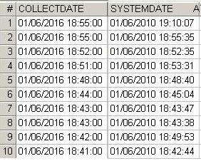 사용하는 오라클 DB에서 수집날짜 데이터 및 생성날짜 데이터가 있습니다.