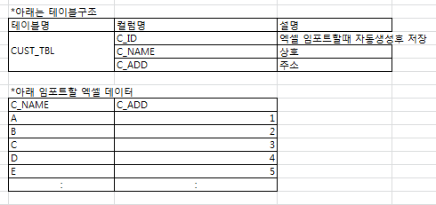 질문2: CUST_TBL에 엑셀자료 임포트하는 코드가 궁굼합니다.