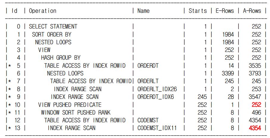 서브쿼리로 작성했을 때는 딱 252건만 접근하고 멈출 수 있어서 혹시 조인으로도 비슷하게 구현이