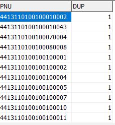 위의 select 쿼리를 실행하게 되면 같은 pnu에 대해 dup값이 1,2,3.. 순서대로 증가할텐데요.
