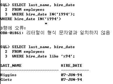 하지만 LIKE 는 오로지 문자비교형 함수이기 때문에 오히려 반대로 날짜형이 문자형으로 바뀌어 비교된것입니다.