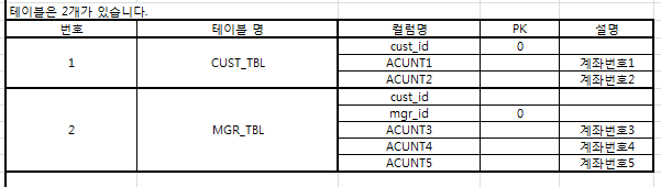 MGR_TBL 에는 계좌번호 컬럼이 세개(ACUNT3, ACUNT4, ACUNT5) 있습니다.