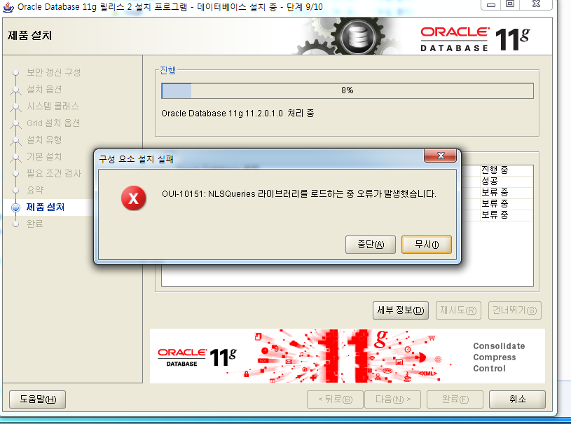 OUI-10151: NLSQueries 라이브러리를 로드하는 중 오류가 발생했습니다
