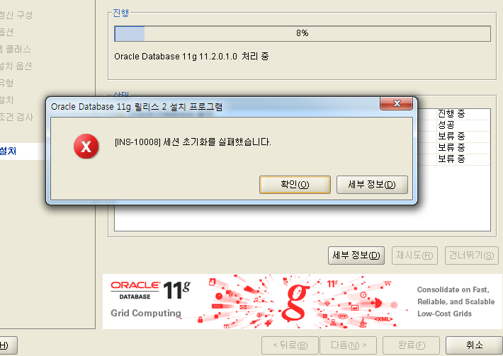 [INS-10008] 세션 초기화를 실패했습니다.