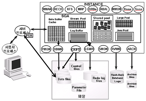 오라클 서버 프로세스는 사용자로부터 받은 요구사항(SQL문)을 처리 합니다.