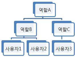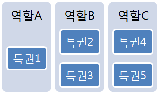 여러 특권을 모아놓은 집합이며, 하나의 단위로 사용자에게 부여할 수 있다. 다음 그림은 역할을 구성하는 예이다.