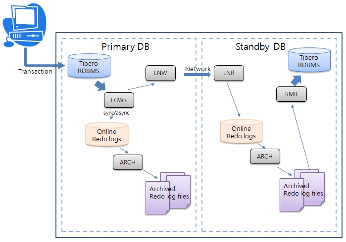 Tibero Standby 서버는 물리적으로 독립된 장소에 원본 데이터베이스의 복사본을 트랜잭션 단위로 보관한다. 복사할 대상이 되는 원본 데이터베이스를 Primary DB라고 부르고, 복사된 데이터가 저장되는 데이터베이스를 Standby DB라고 부른다.