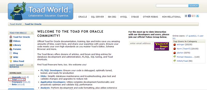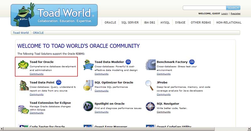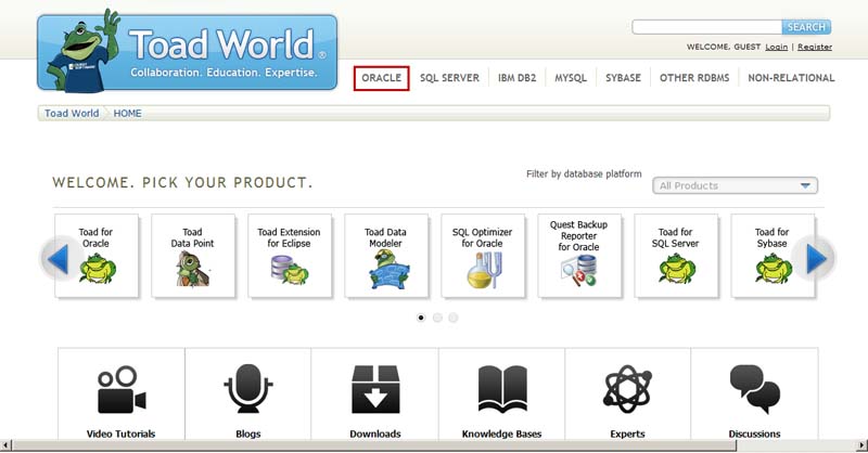 1. www.toadworld.com 홈페이지로 이동 후 Oracle을 선택하고 Oracle 데이터베이스 환경에서 사용 가능한 제품 리스트 중에서 Toad for Oracle 선택합니다.