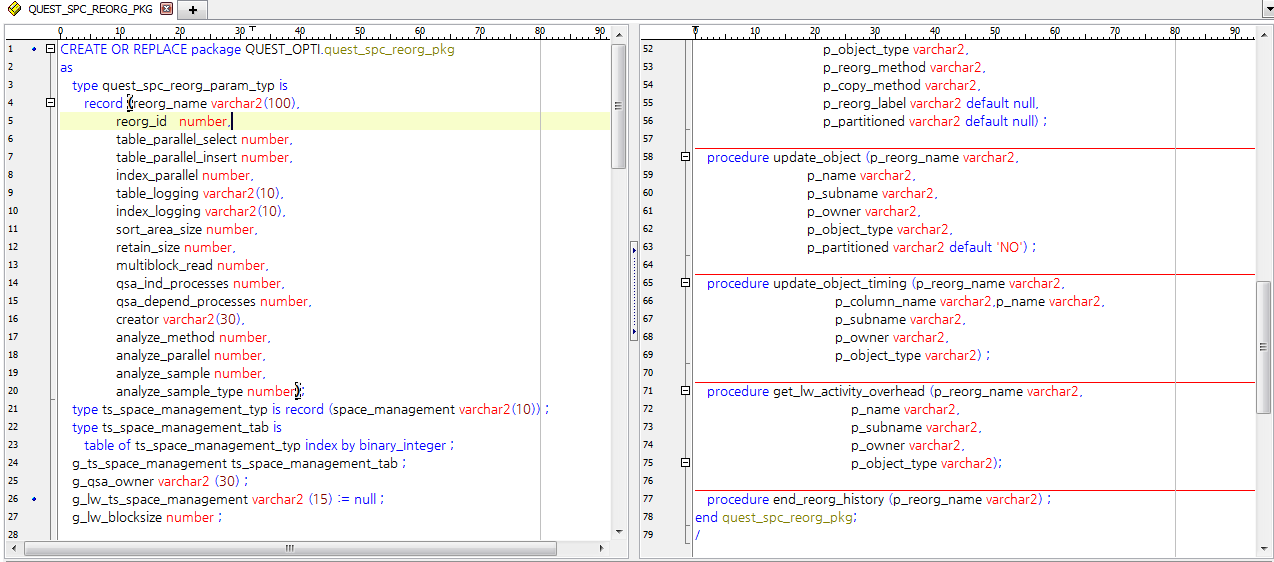 PL/SQL 또는 SQL 문장이 길면 상위에 있는 코드와 하위에 있는 코드를 한 화면에 보기가 힘들고, 매 번 마우스로 스크롤하며 작업을 해야 하므로 효율성이 떨어지게 됩니다. 그래서 이러한 경우 Split Editor Layout 기능을 사용하면 한 코드를 두 개의 Editor 화면으로 분리하여 분석 및 편집 할 수 있어 매우 유용하게 사용할 수 있습니다