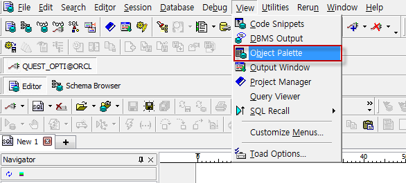 Toad 메인 메뉴 > View > Object Palette