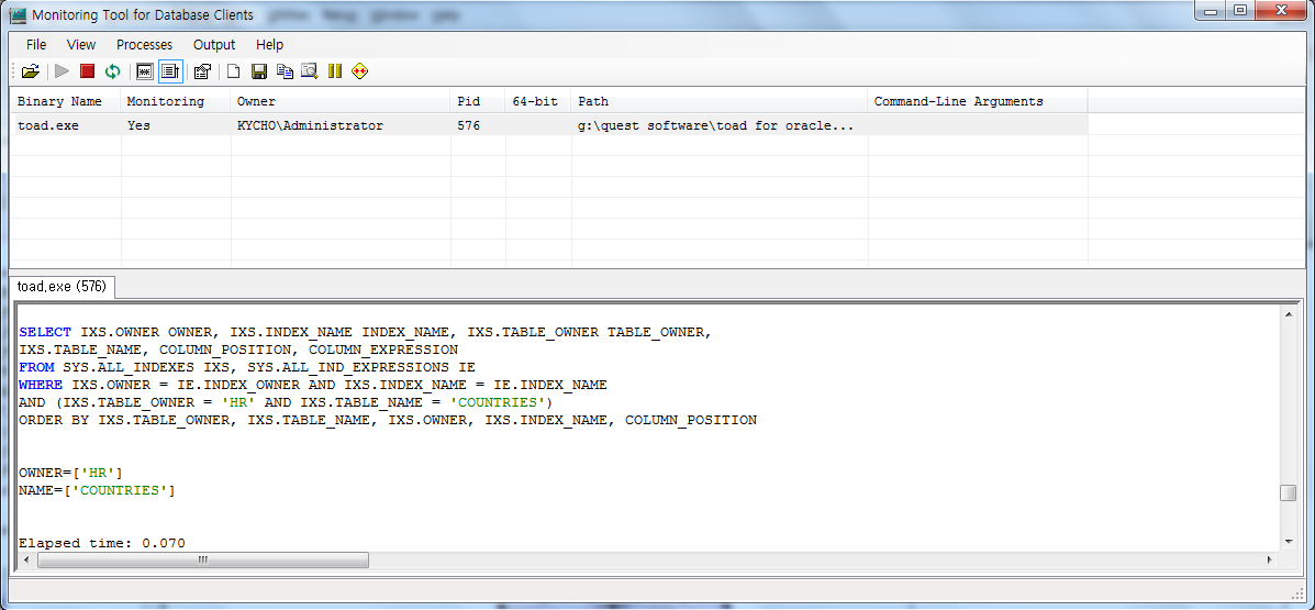 Toad 메인 메뉴 > Database > Monitor > SQL Tracker