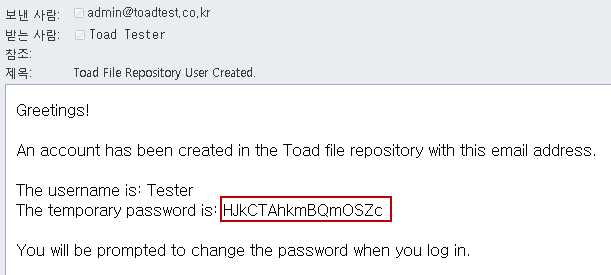임시 패스워드로 최초 로그인을 하고 자동으로 패스워드를 변경해야 합니다.