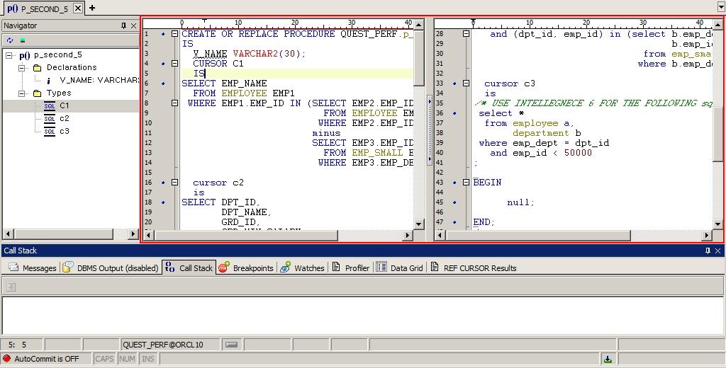 긴 SQL이나 Script를 한 화면에서 작업할 때 Editor화면을 나누어 작업하면 보다 효율적으로 작업할 수 있습니다.