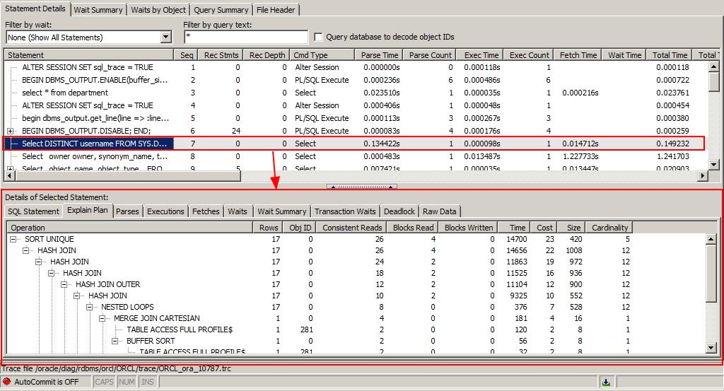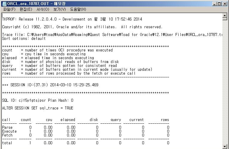 최종적으로 메모장이 열리면서 Trace File 분석 내용이 나타납니다.
