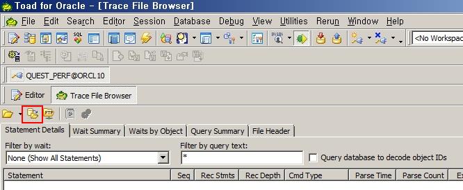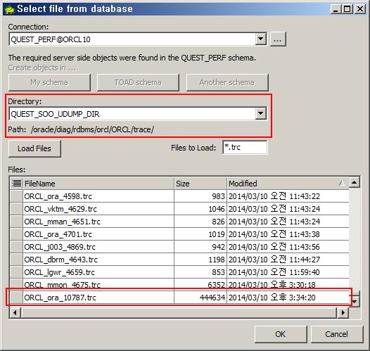 Open trace file on database server를 눌러 오라클 서버의 trace file을 불러옵니다.