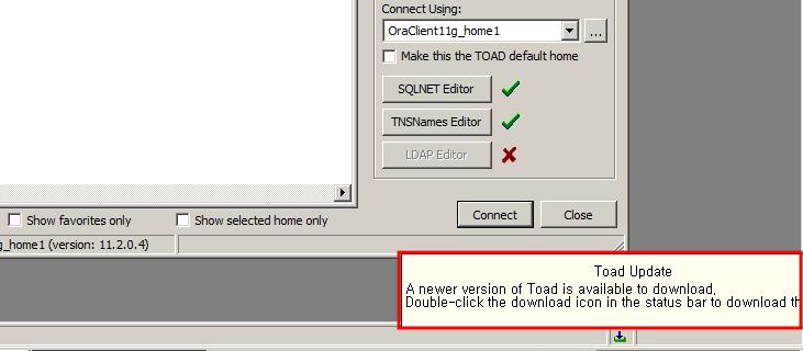 토드를 사용하는 PC에 인터넷이 연결되어 있고 현재 토드를 최신 버전을 사용하고 있지 않다면 토드를 시작할 때마다 업데이트에 대한 공지가 창의 아래에 나타납니다.