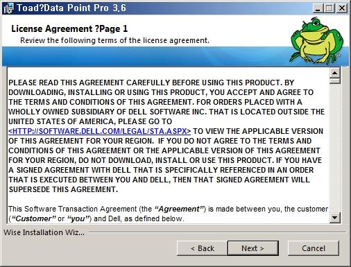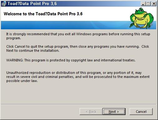 Toad Data Point 설치 CD 혹은 다운로드 받은 파일을 실행합니다. Next 버튼을 누릅니다.