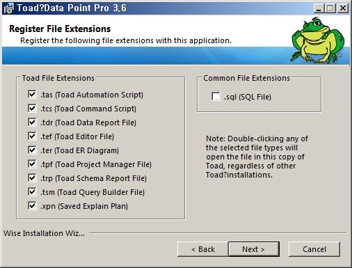 Toad Data Point에 연결할 파일 확장자를 선택합니다.