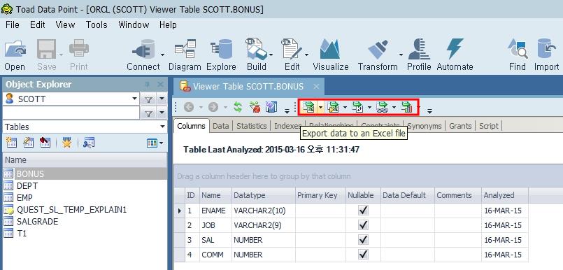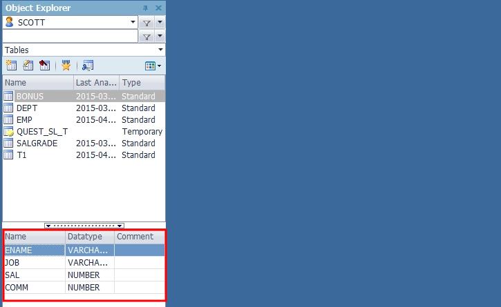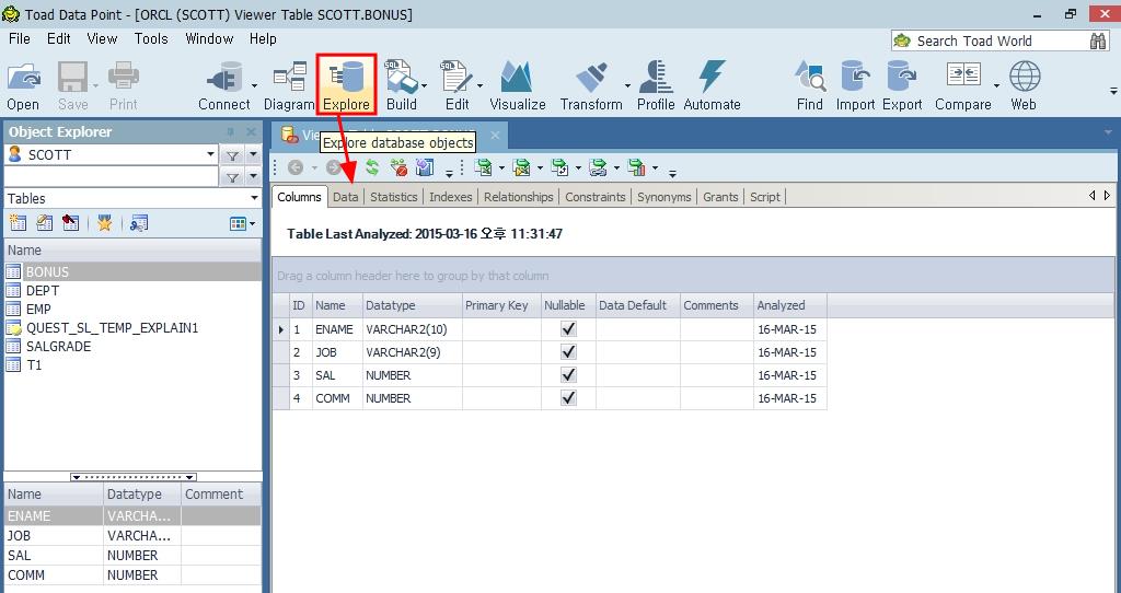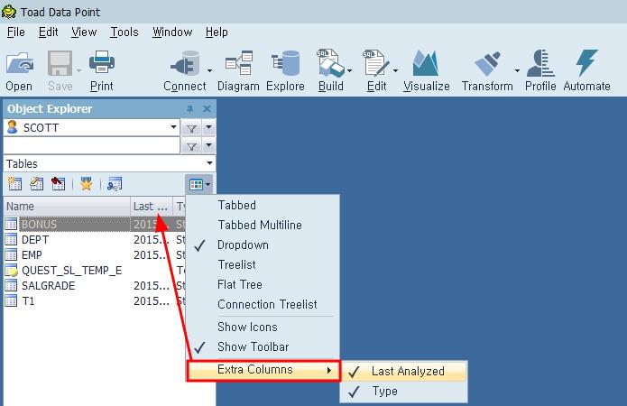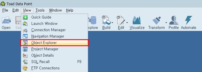 Toad Data Point는 오브젝트를 조회할 수 있는 탐색기(Explorer)를 제공합니다.