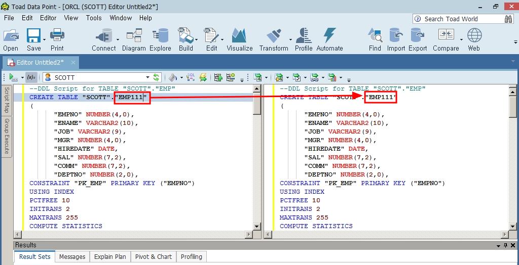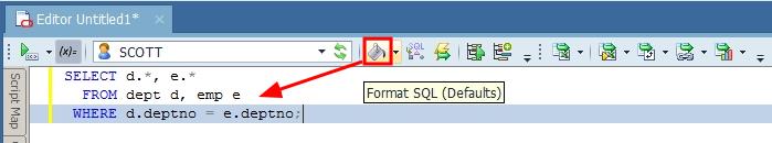 를 누르면 Toad Data Point에서 미리 지정한 규칙대로 SQL문장을 변형(표준화) 합니다.