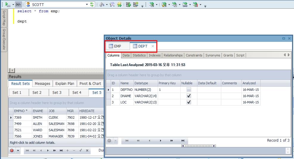 Object Details 창을 닫지 않고 계속해서 [F4] 버튼을 클릭하면 한 개의 창에서 테이블이 탭으로 구분이 됩니다.