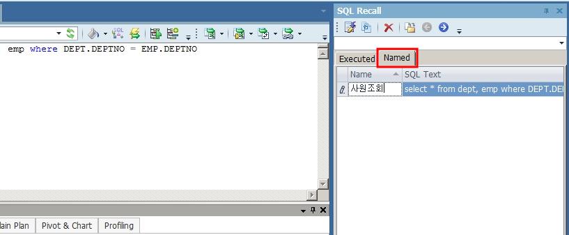SQL Recall의 Executed탭에는 정상적으로 수행된 모든 SQL문장이 저장을 되는데 그 중에서 별도로 저장할 SQL문장은 마우스 오른쪽 버튼을 누르고 Move to named를 선택합니다.