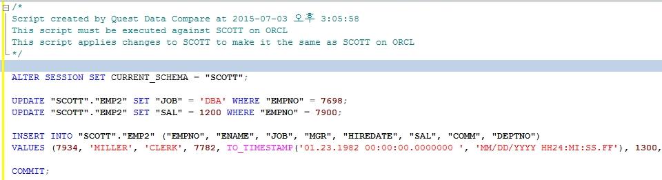 Data Diff Viewer에 비해서 강력한 기능을 가지고 있는데 서로 다른 데이터베이스 간의 비교도 가능하며 비교 후 차이점에 대해서 동기화 스크립트도 제공합니다.