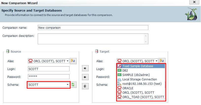 Toad Data Point는 서로 다른 두 스키마 간의 테이블 또는 뷰를 비교하는 Data Compare 기능을 제공합니다.