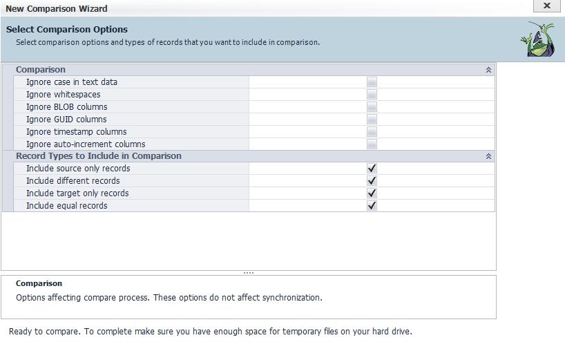 비교할 때 옵션을 지정합니다. 설정이 끝나면 Compare 버튼을 눌러 비교를 시작합니다.