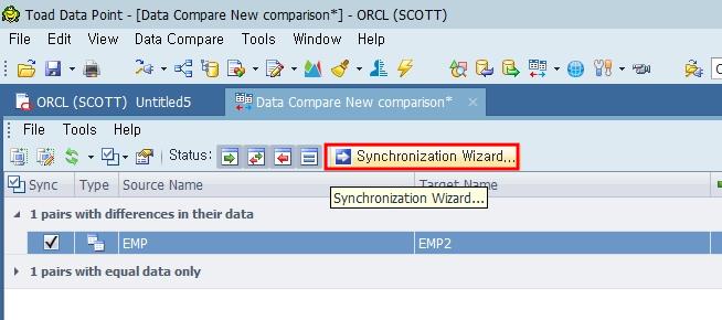 차이가 나는 데이터에 대해서는 Synchronization Wizard 버튼을 눌러 동기화 작업을 진행할 수 있습니다.