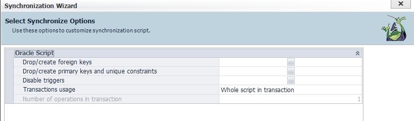 동기화 스크립트를 작성할 때 옵션을 지정합니다. 설정을 하고 Next 버튼을 누릅니다.