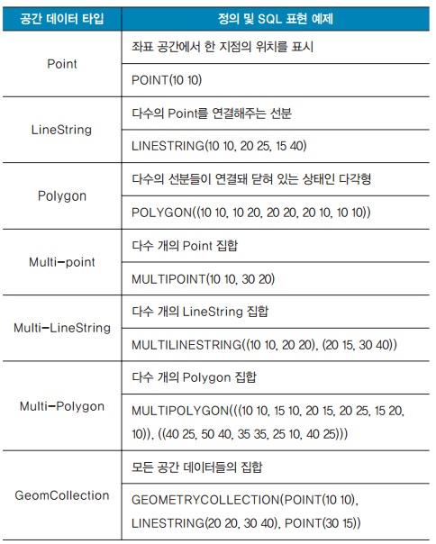 지리 정보와 위치 기반 서비스는 사용자가 계속 증가하고 있으며 시스템의 성능을 향상 시키기 위해서 DBMS도 사용자 요구에 맞게 공간 데이터 및 함수를 제공해주고 있다.