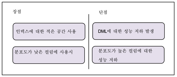 · 분포도가 낮은 컬럼에 적용해도 성능 저하가 발생한다.