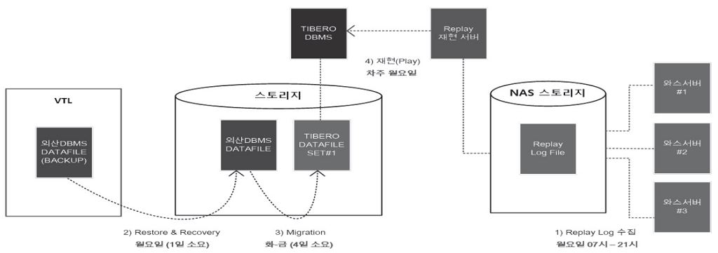 (이러한 반복 수행에 필요한 시간을 단축하고 정해진 시간 동안 최대한 품질을 높이기 위해선 그림 3-3을 통해 안내했던 티베로 리플레이 수행을 위한 스토리지 추가 구성이 반드시 필요하다).